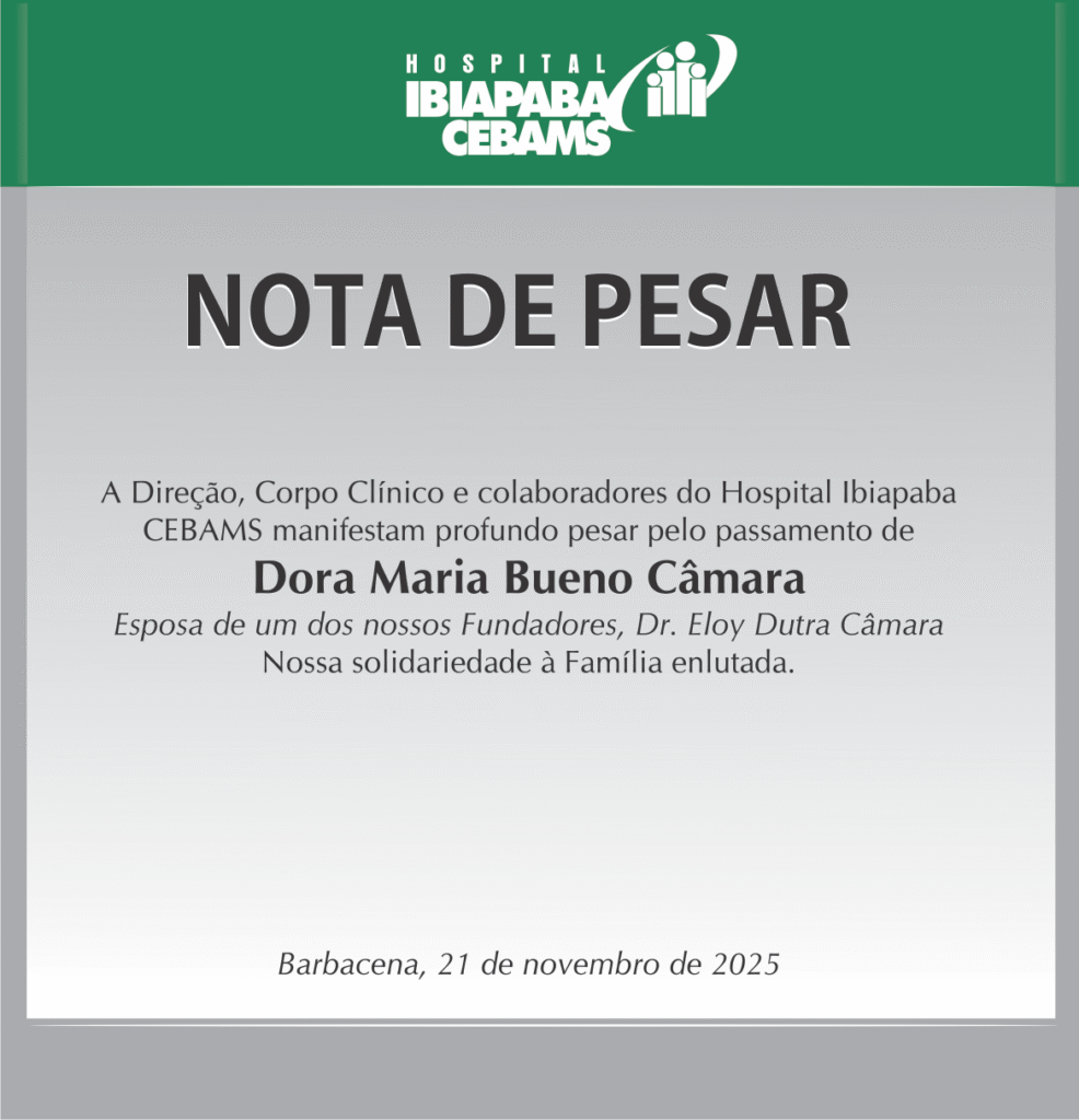 Faleceu na noite da quinta-feira (20/11), Dora Maria Bueno Câmara, viúva do médico e um dos fundadores do Hospital Ibiapaba CEBAMS, Dr. Eloy Dutra Câmara. O sepultamento ocorreu no Cemitério da Boa Morte, em Barbacena. A direção emitiu Nota de Pesar.