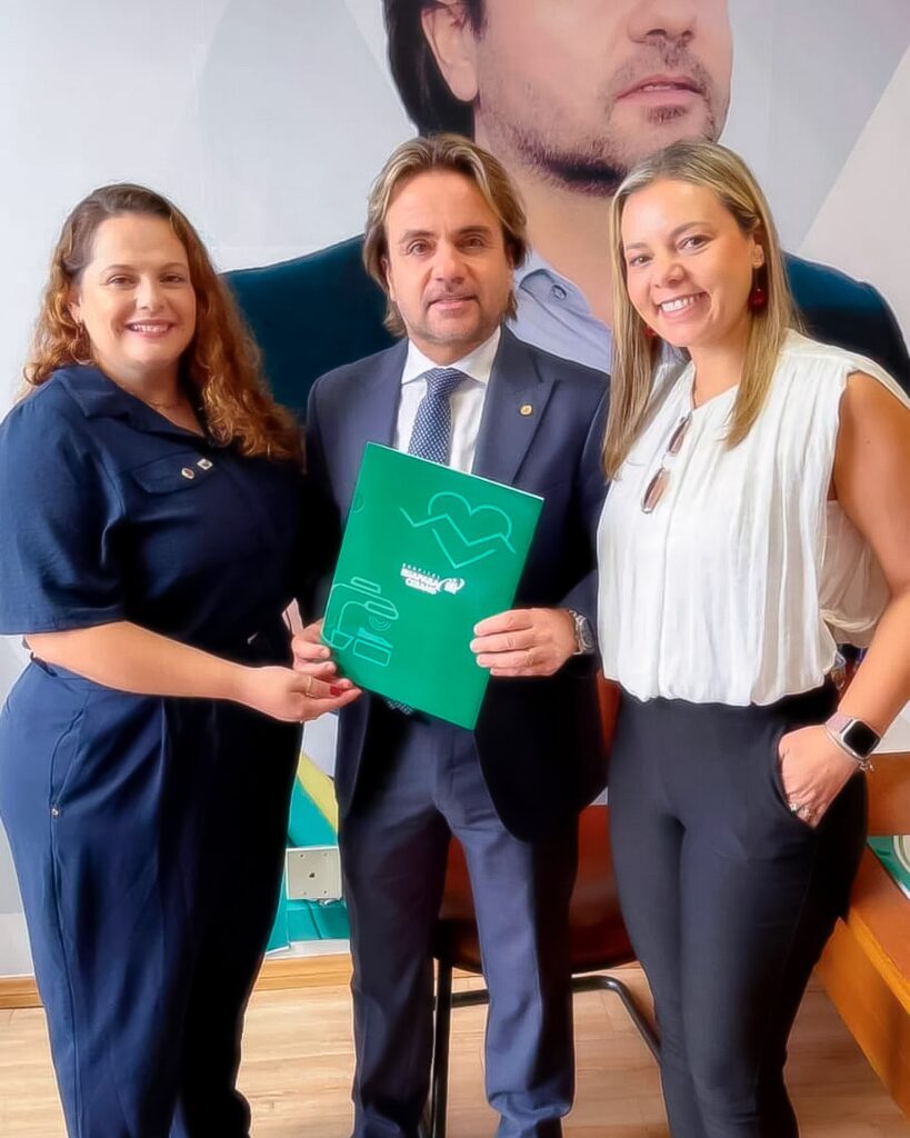 Em Brasília (DF), as colaboradoras Lorena Cardoso (Gerente Financeira) e Aline Capilupe (Relações Institucionais) estiveram no gabinete do Deputado Federal, que destacou a parceria com a unidade hospitalar.